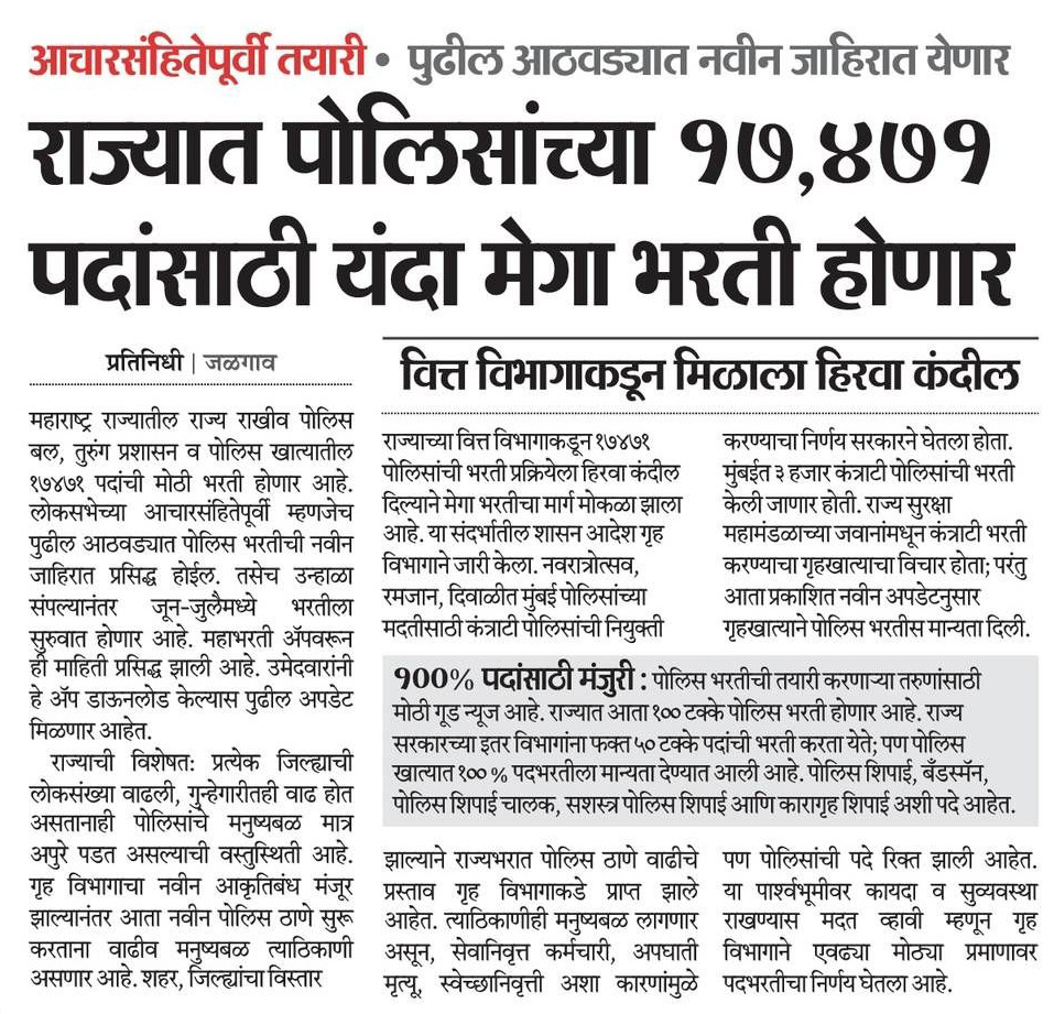 महाराष्ट्र पोलीस भरतीसाठी याच महिन्यात जाहिरात येण...